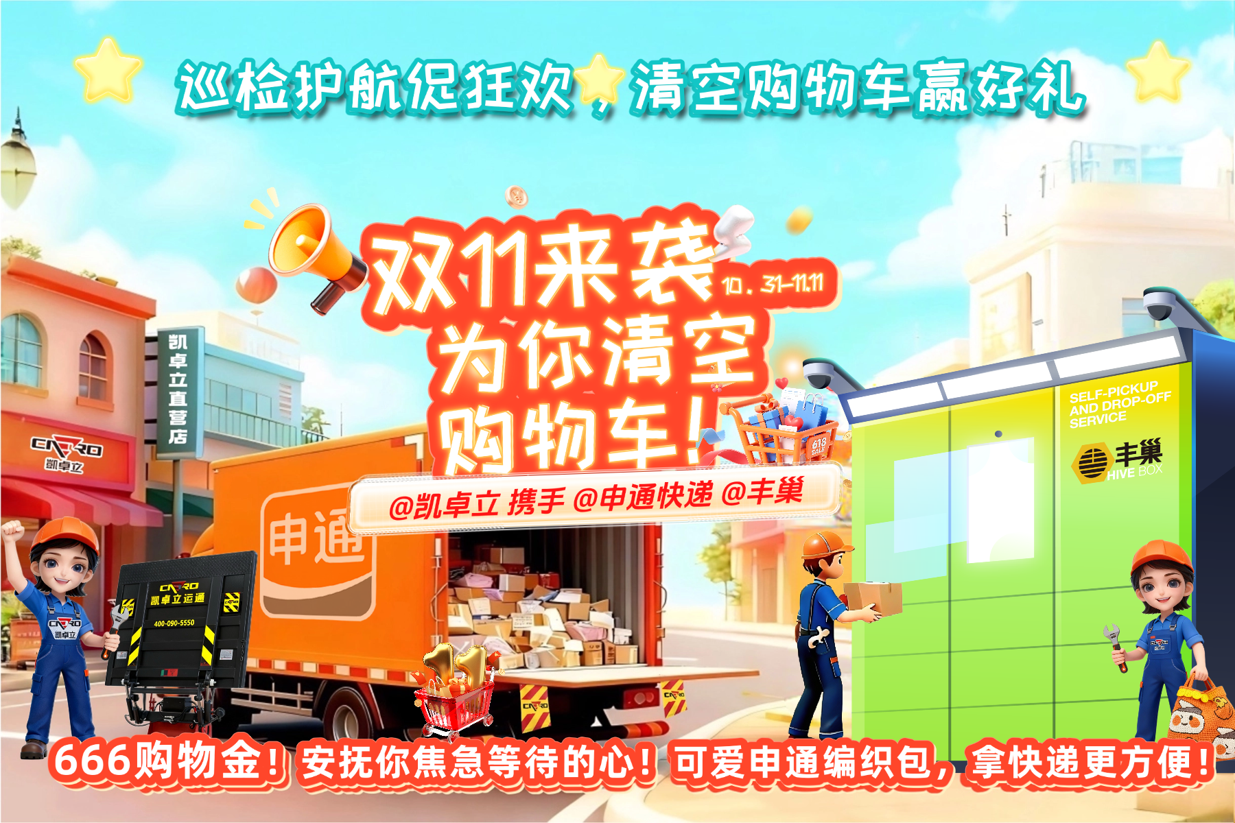 清空購物車迎好禮!凱卓立 × 申通 × 豐巢雙十一巡檢護(hù)航,促狂歡。 親愛的 “剁手黨” 們,雙十一的快遞是不是已經(jīng)讓你忍不住刷了八百遍物流信息?別慌!為了讓你順順利利拿到每一個(gè)包裹,凱卓立攜手申通快遞、豐巢,開啟雙十一巡檢護(hù)航促狂歡活動(dòng),從物流運(yùn)輸?shù)侥┒私桓叮虨槟愕陌?“保駕護(hù)航”!